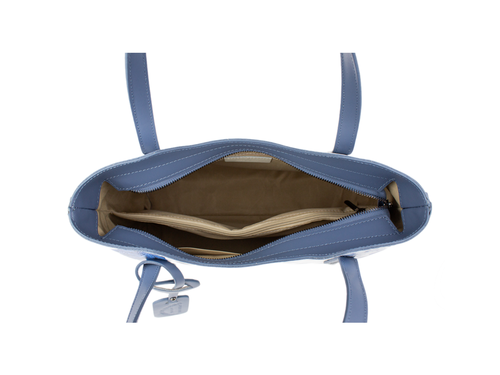 Praktická kabelka v barevném provedení pro každodenní nošení vyrobená z pevné pravé kůže. Nosí se v ruce nebo na rameni. Kabelka je uzavíratelná na zip. Součástí balení je přídavný popruh - cca 107 cm v plné délce. Uvnitř kabelky najdeme přepážku uprostřed, která zároveň slouží jako kapsa na zip, a na bočních stěnách pak kapsu na zip a 2 malé kapsy vhodné např. pro mobil a peněženku.