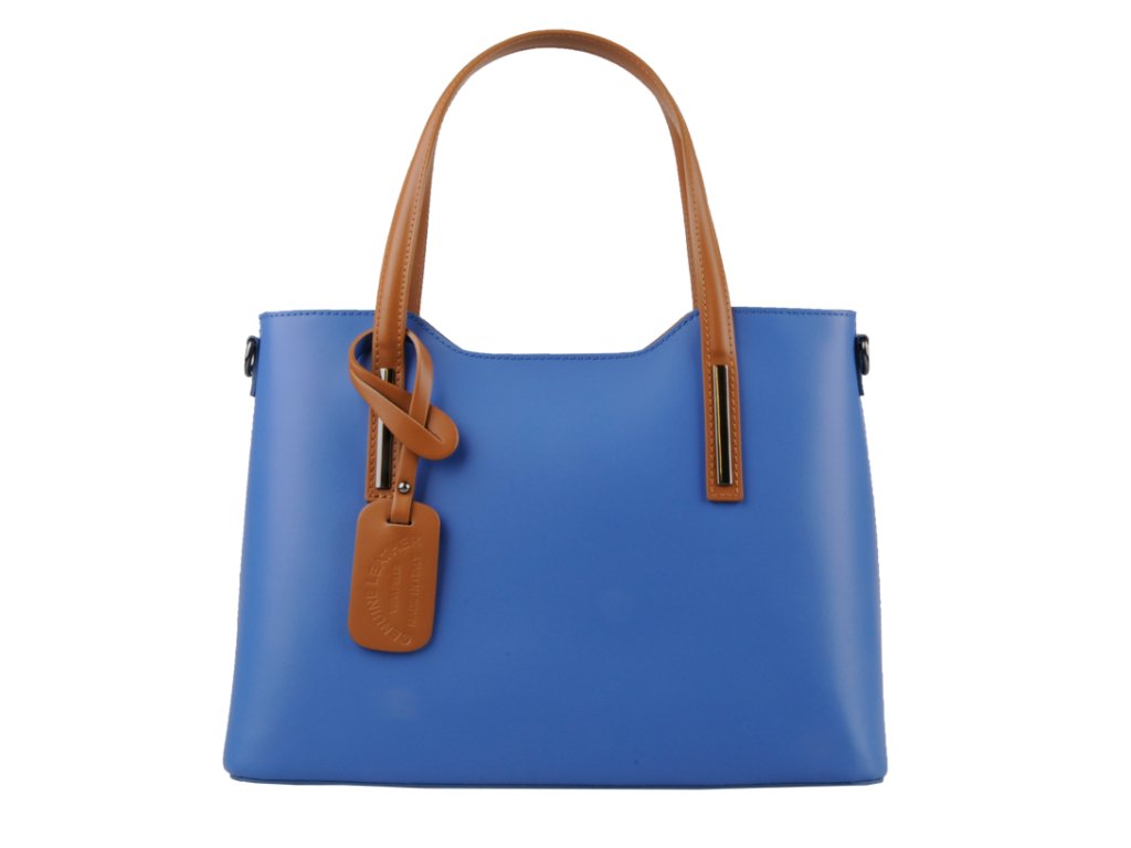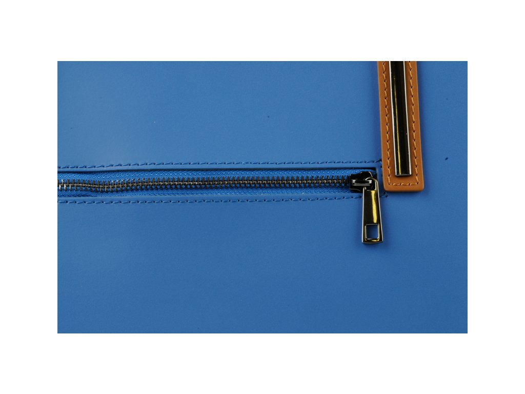 Praktická kabelka v modrém provedení pro každodenní nošení vyrobená z pevné pravé kůže. Nosí se v ruce nebo na rameni. Kabelka je uzavíratelná na zip. Součástí balení je přídavný nastavitelný popruh - cca 107 cm v plné délce. Uvnitř kabelky najdeme přepážku uprostřed, která zároveň slouží jako kapsa na zip, a na bočních stěnách pak kapsu na zip a 2 malé kapsy vhodné např. pro mobil a peněženku.