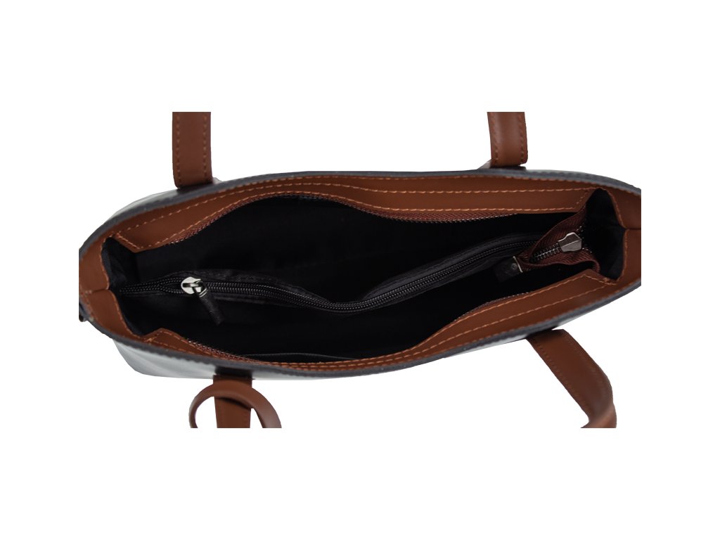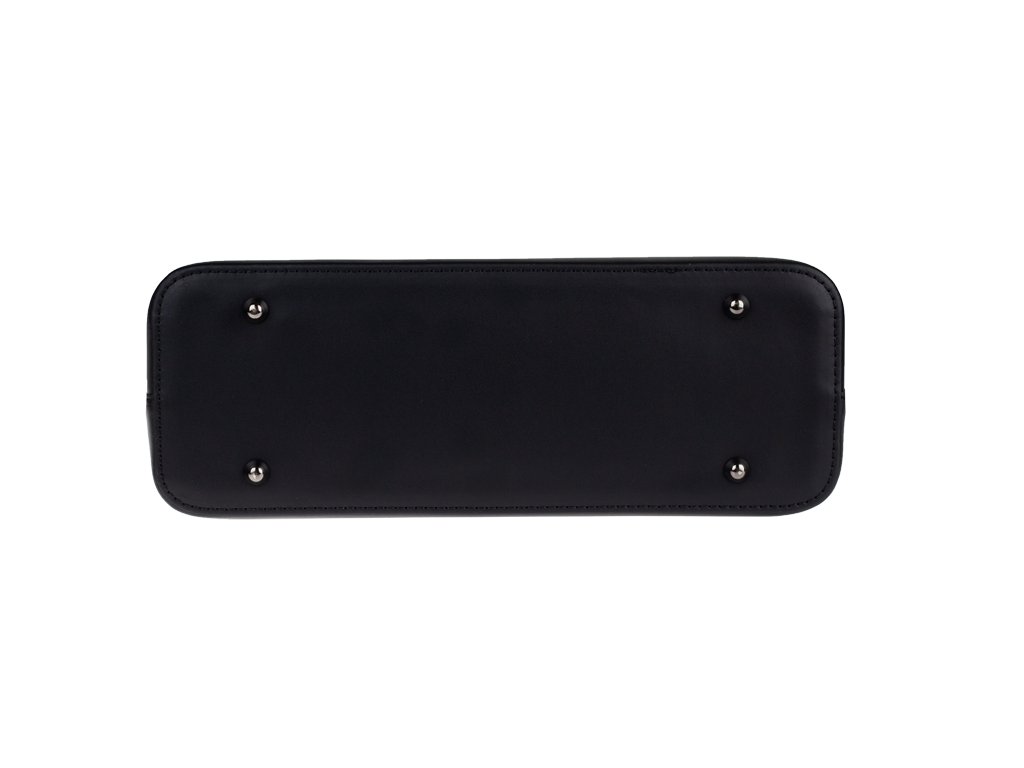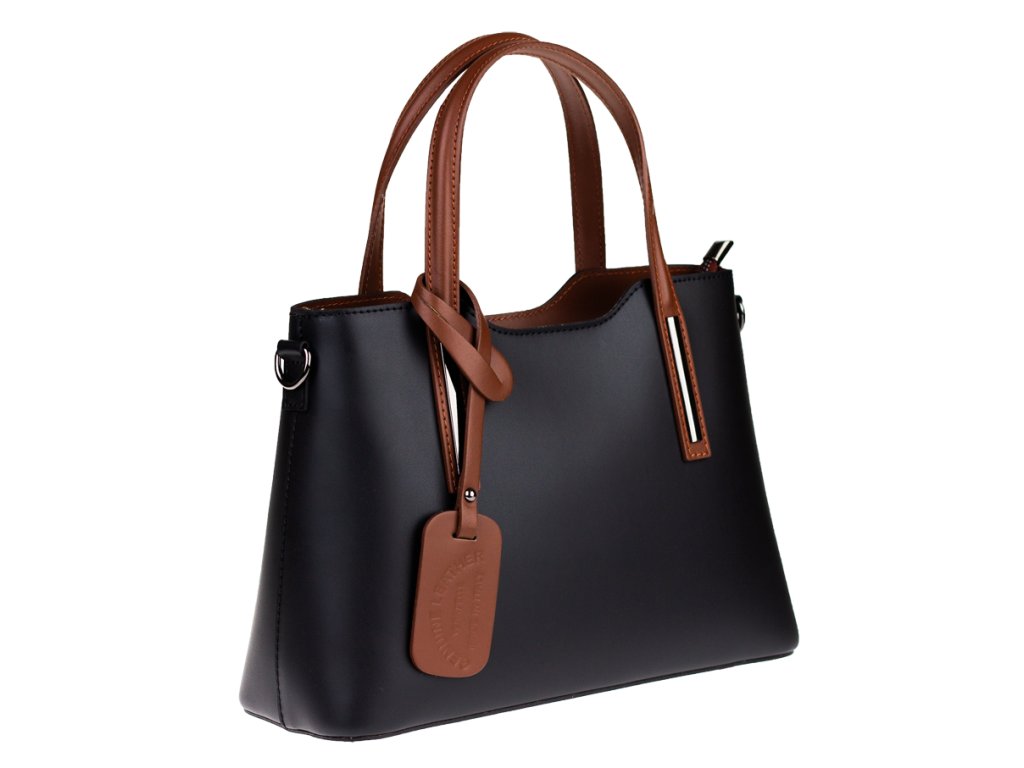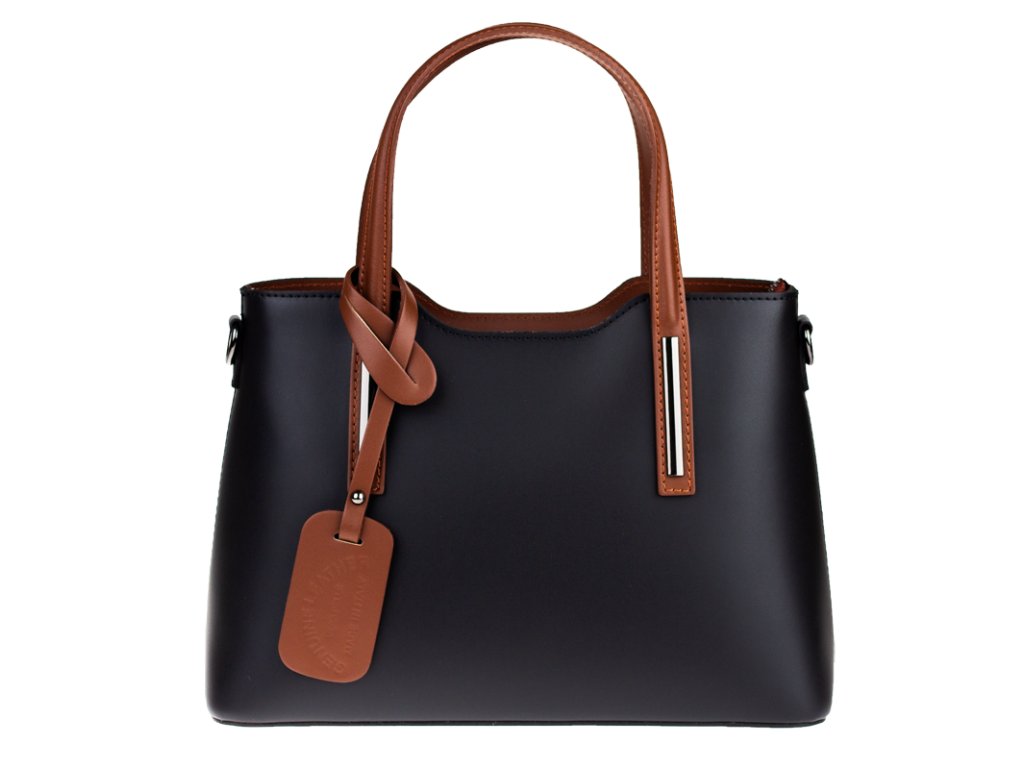 Praktická kabelka v černém provedení pro každodenní nošení vyrobená z pevné pravé kůže. Nosí se v ruce nebo na rameni. Kabelka je uzavíratelná na zip. Součástí balení je přídavný popruh - cca 107 cm v plné délce. Uvnitř kabelky najdeme přepážku uprostřed, která zároveň slouží jako kapsa na zip, a na bočních stěnách pak kapsu na zip a 2 malé kapsy vhodné např. pro mobil a peněženku.