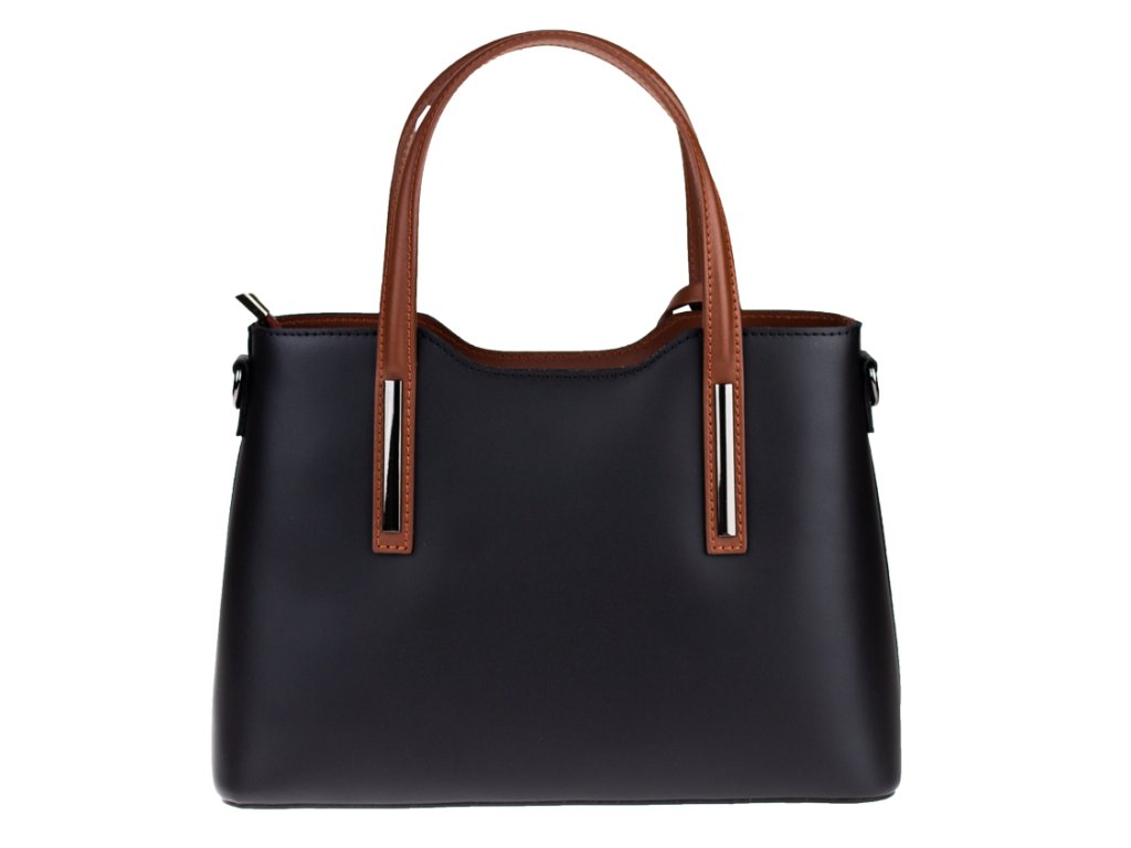 Praktická kabelka v černém provedení pro každodenní nošení vyrobená z pevné pravé kůže. Nosí se v ruce nebo na rameni. Kabelka je uzavíratelná na zip. Součástí balení je přídavný nastavitelný popruh - cca 107 cm v plné délce. Uvnitř kabelky najdeme přepážku uprostřed, která zároveň slouží jako kapsa na zip, a na bočních stěnách pak kapsu na zip a 2 malé kapsy vhodné např. pro mobil a peněženku.