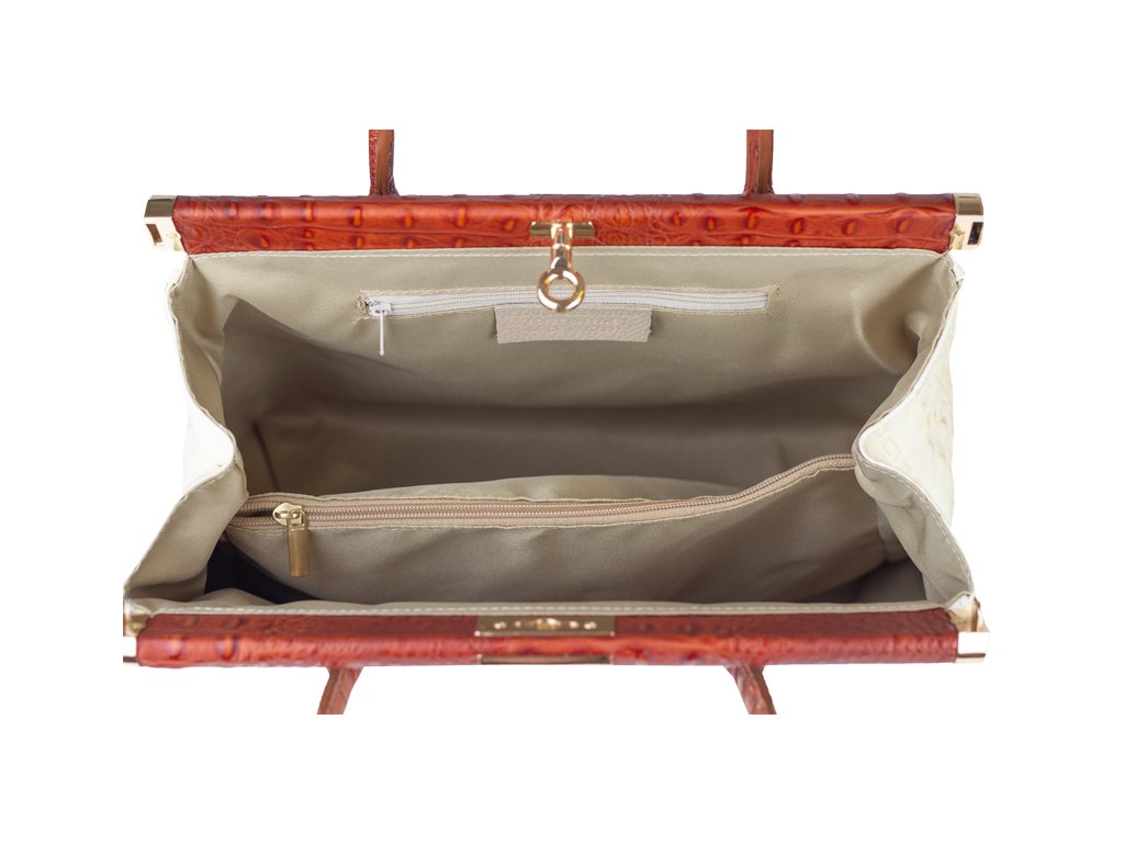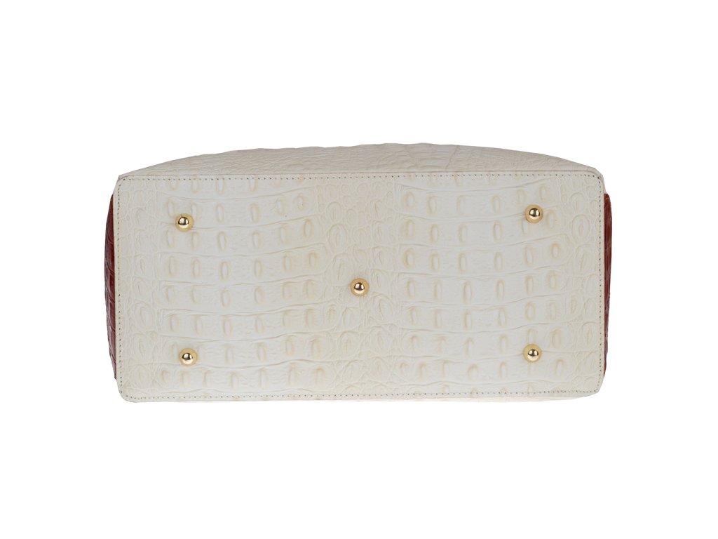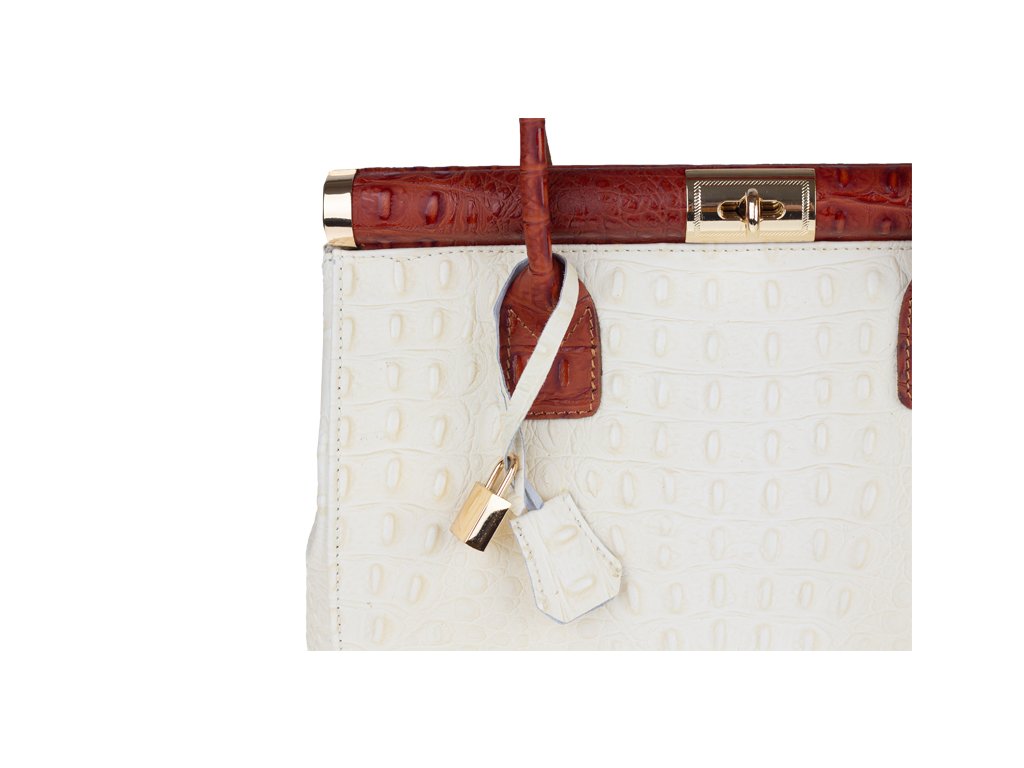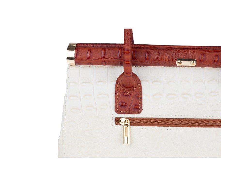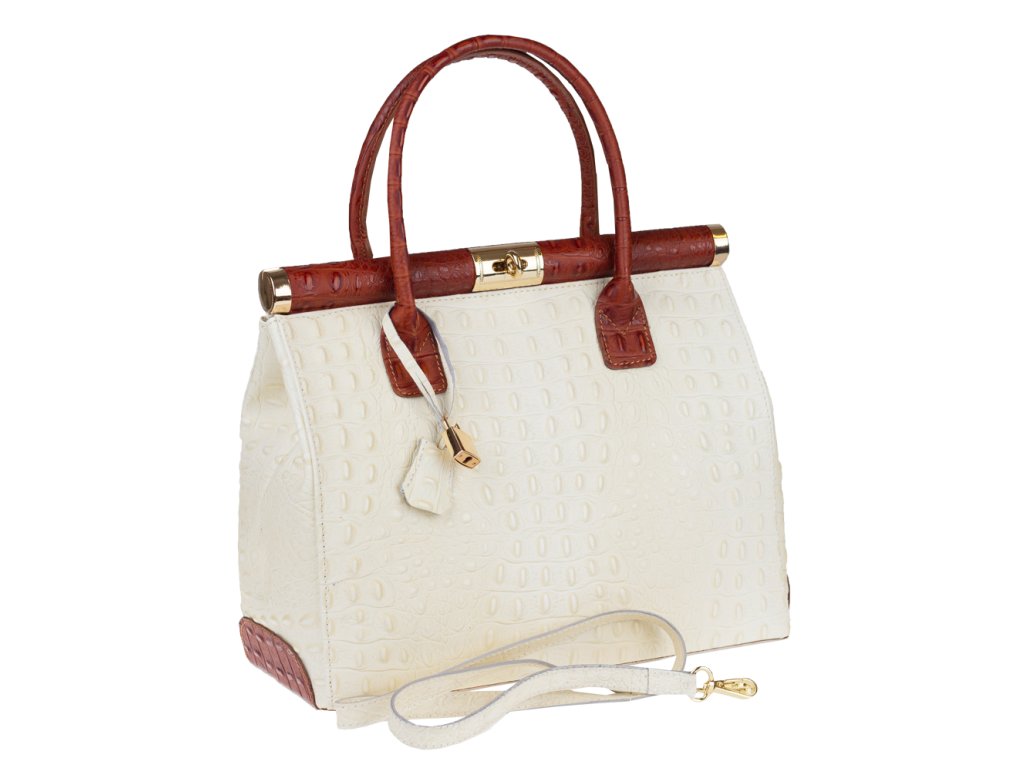 Tato kabelka zvaná též "doktorská" se může pochlubit kromě svého klasického designu tím, že dobře drží tvar. Tato kožená kabelka je nositelná do ruky a uzavíratelná na patentek, který pak v případě potřeby můžete uzamknout přiloženým zámečkem. Jejím materiálem je pravá kůže v béžové barvě s úpravou krokodýlí textury. Uvnitř najdete kapsu na zip a 2 malé kapsy vhodné např. pro Váš mobil a peněženku a uprostřed je látková přepážka také s kapsou na zip. Kabelka má navíc k tomu všemu kapsu na zip na vnější zadní straně. Hloubka jejího dna je 15 cm. Další barevné varianty naleznete zde.