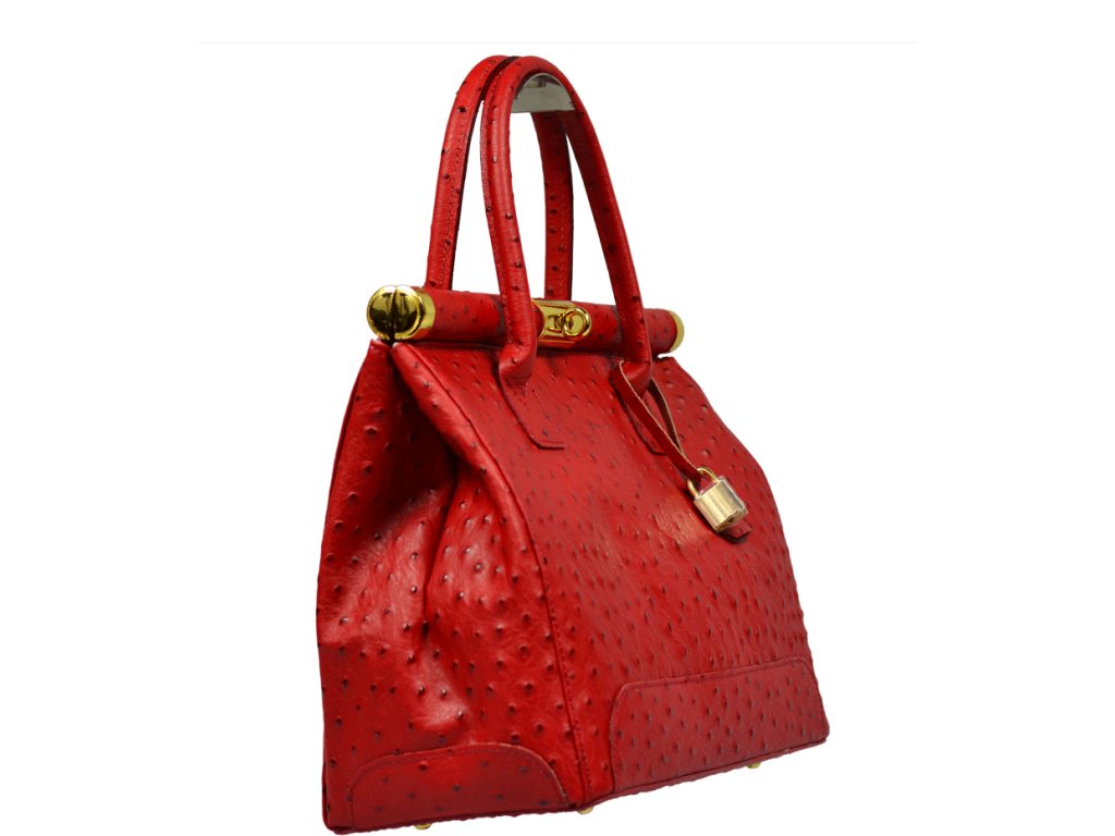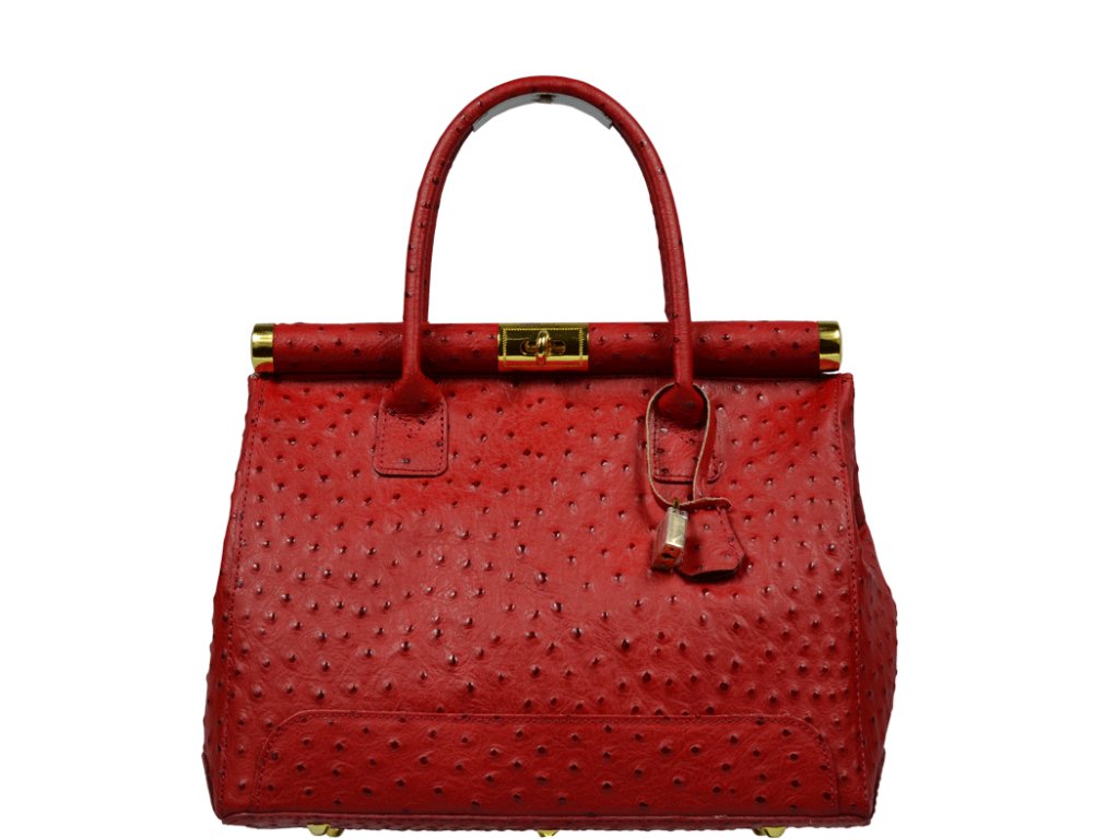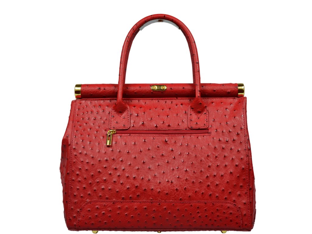 Tato kabelka zvaná též "doktorská" se může pochlubit kromě svého klasického designu tím, že dobře drží tvar. Tato kožená kabelka je nositelná do ruky a uzavíratelná na patentek, který pak v případě potřeby můžete uzamknout přiloženým zámečkem. Jejím materiálem je pravá kůže v červené barvě s úpravou pštrosí textury. Součástí balení je přídavný pásek v délce cca 100 cm. Uvnitř najdete kapsu na zip a 2 malé kapsy vhodné např. pro Váš mobil a peněženku a uprostřed je látková přepážka také s kapsou na zip. Kabelka má navíc k tomu všemu kapsu na zip na vnější zadní straně. Hloubka jejího dna je 15 cm.