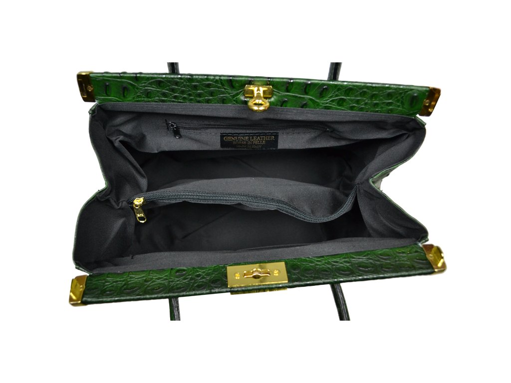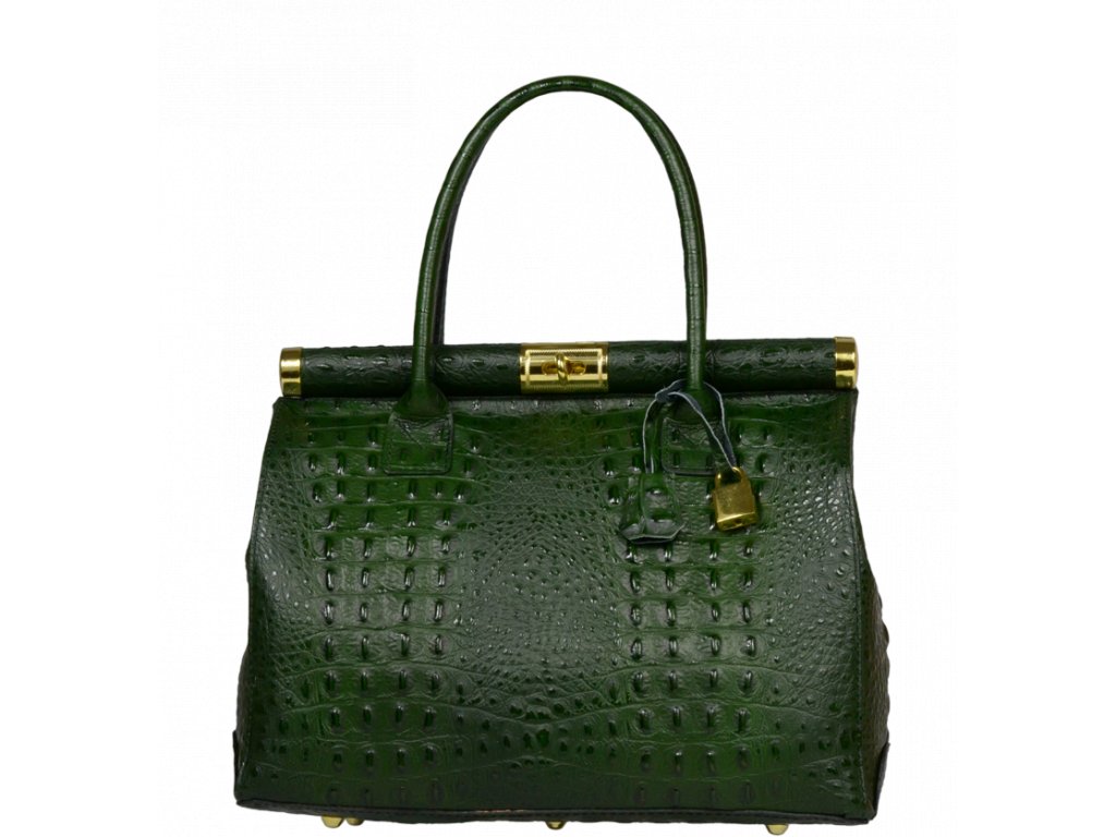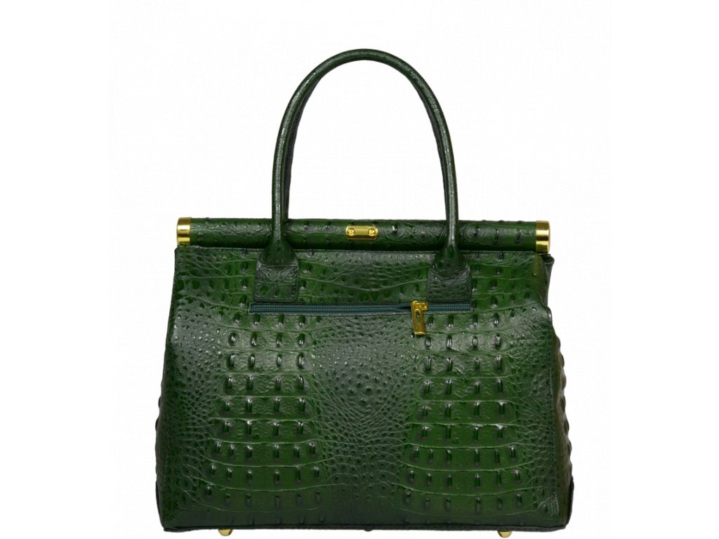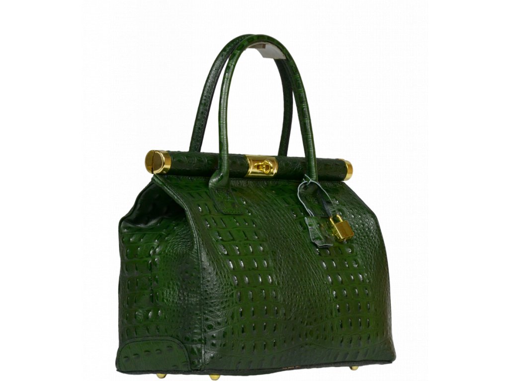 Tato zelená kabelka zvaná též "doktorská" se může pochlubit kromě svého klasického designu tím, že dobře drží tvar. Zelená kožená kabelka je nositelná do ruky a uzavíratelná na patentek, který pak v případě potřeby můžete uzamknout přiloženým zámečkem. Jejím materiálem je pravá kůže v zelené barvě. Uvnitř najdete kapsu na zip a 2 malé kapsy vhodné např. pro Váš mobil a peněženku a uprostřed je látková přepážka také s kapsou na zip. Kabelka má navíc k tomu všemu kapsu na zip na vnější zadní straně. Hloubka jejího dna je 15 cm.