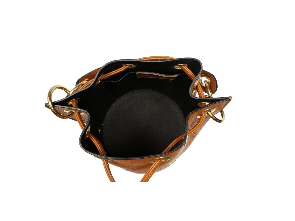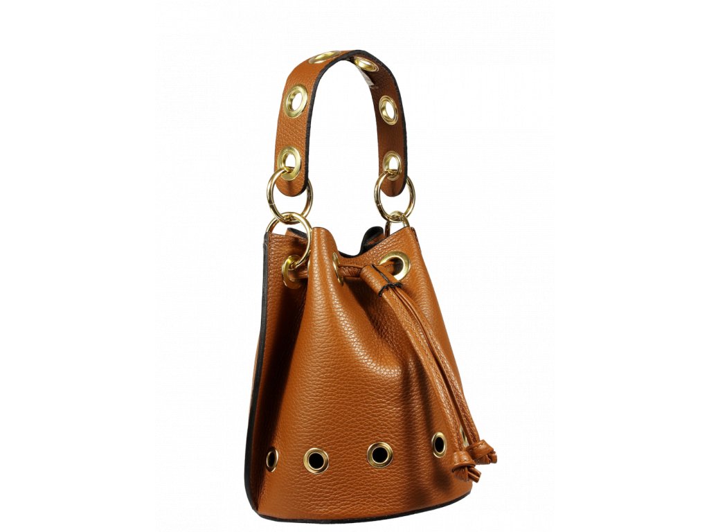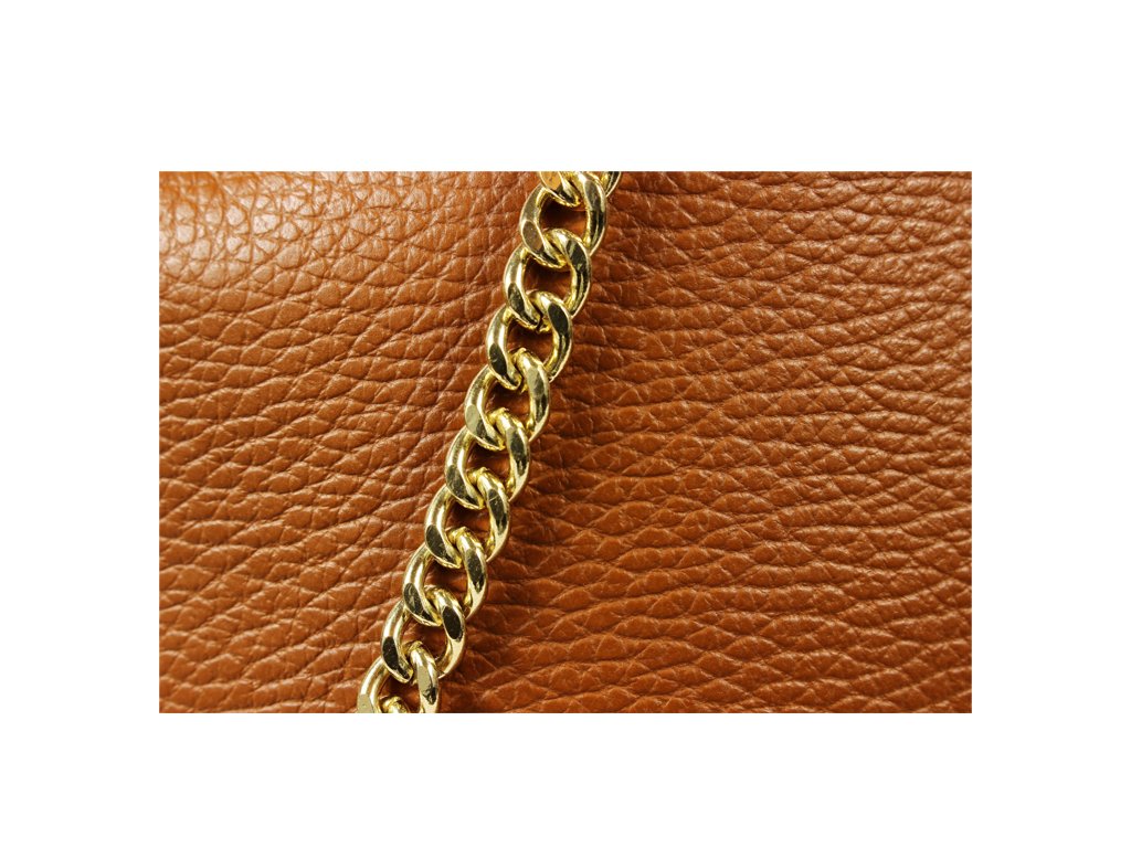 Malá praktická elegantní kabelka z pravé kůže. Kabelku je možné nosit v ruce nebo přes rameno. Součástí kabelky je zlatý řetízek přes rameno délky 110 cm, řetízek je v horní části opatřen koženým doplňkem aby netlačil.