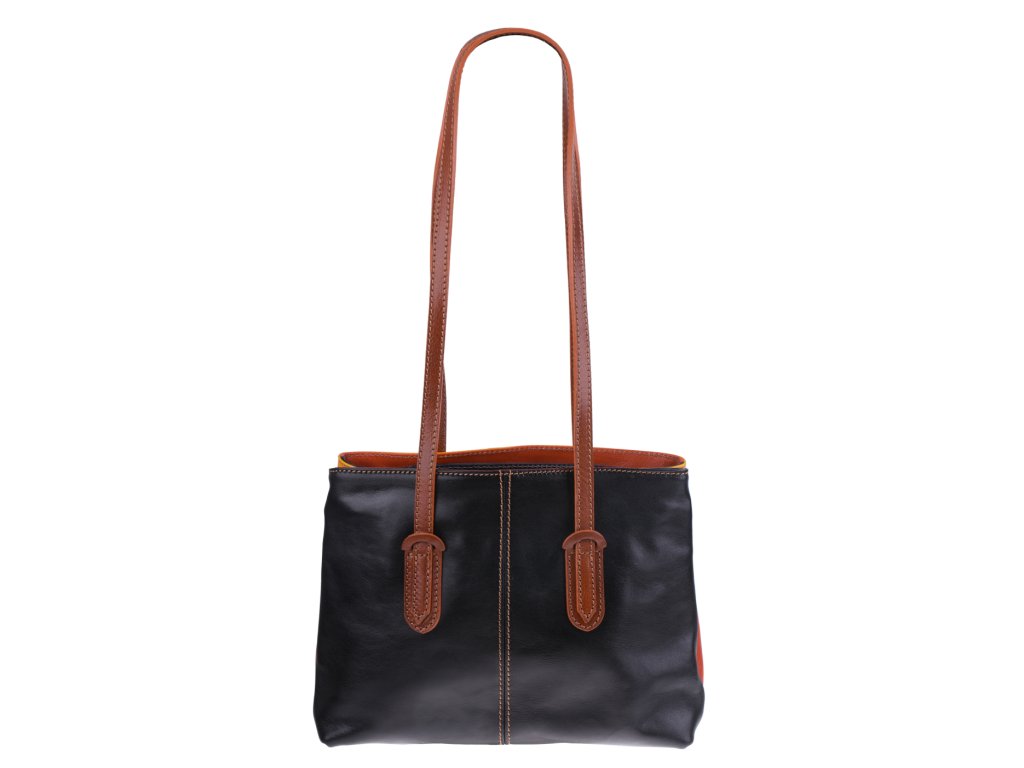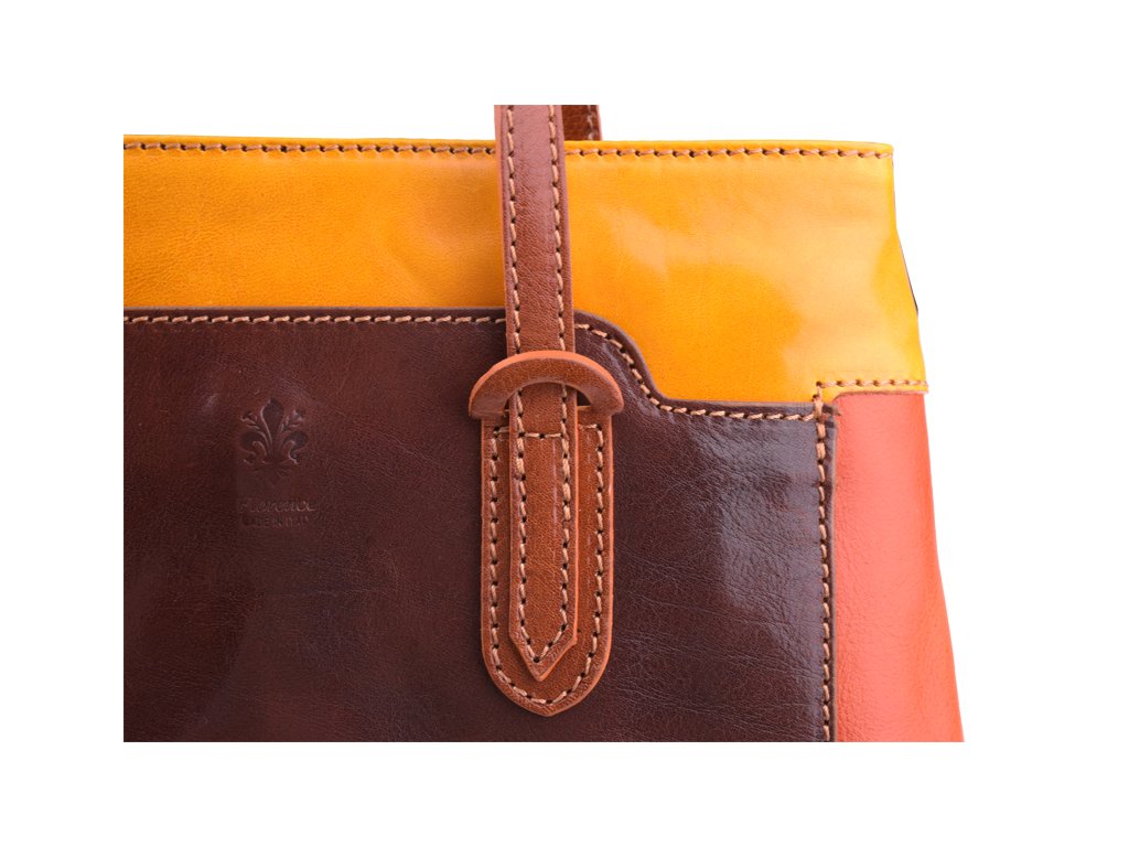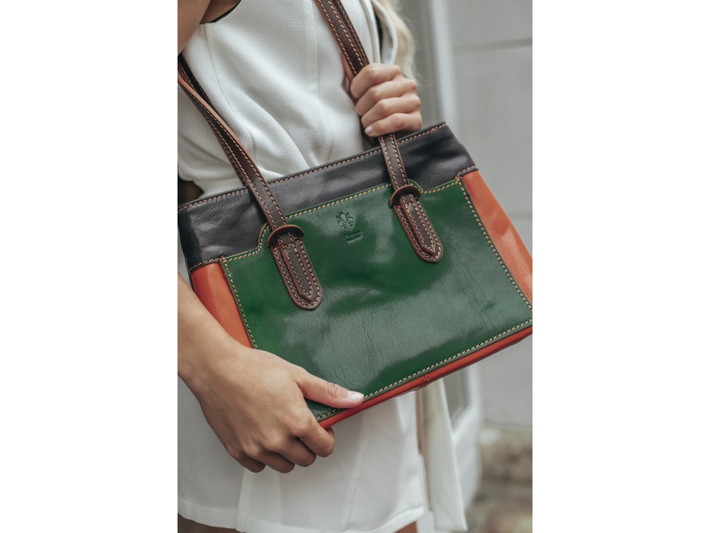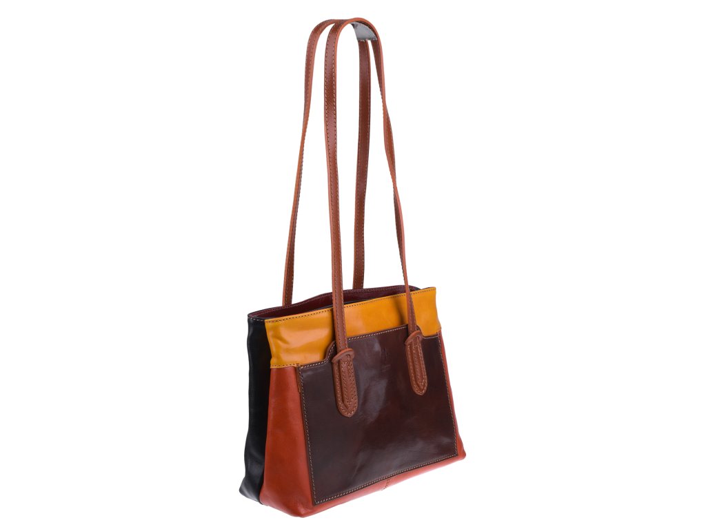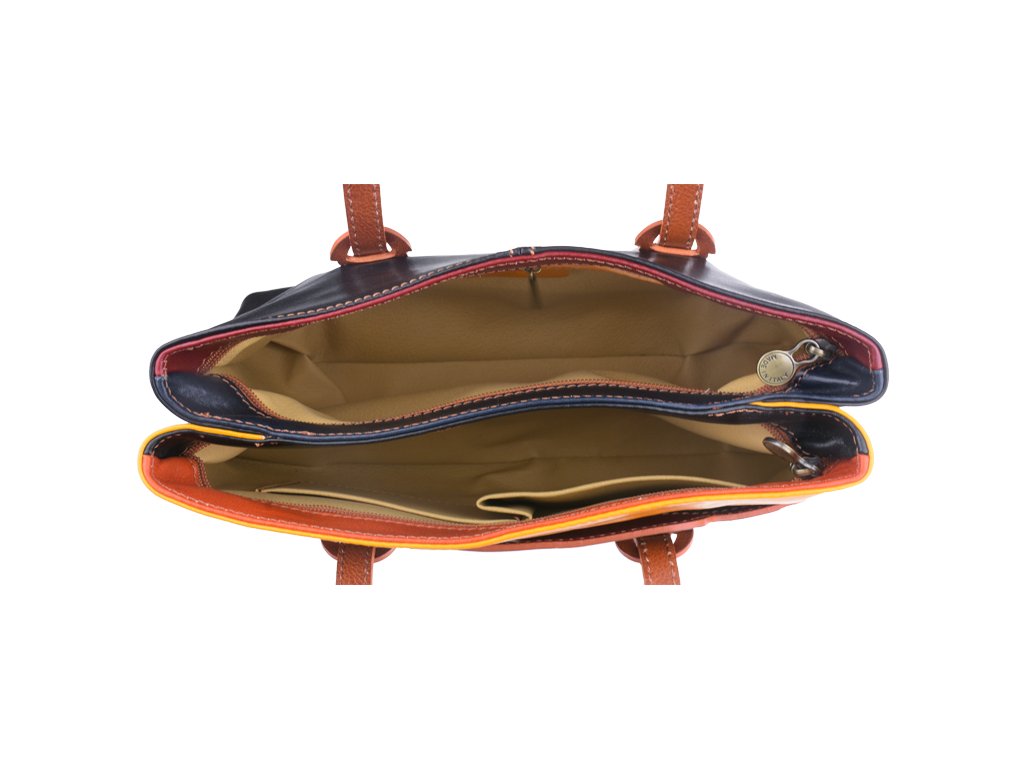 Elegantní a praktická barevná kabelka . Vnitřek kabelky je rozdělen na dvě samostatné přihrádky na zip a malou kapsou na klíče či mobil.