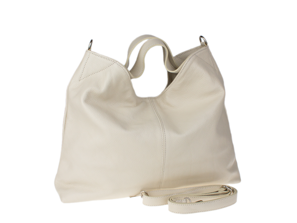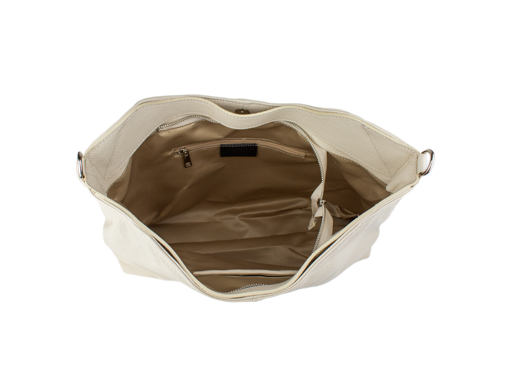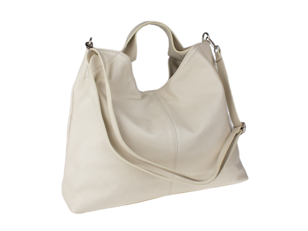 Elegantní kožená hobo kabelka v barvě béžové.