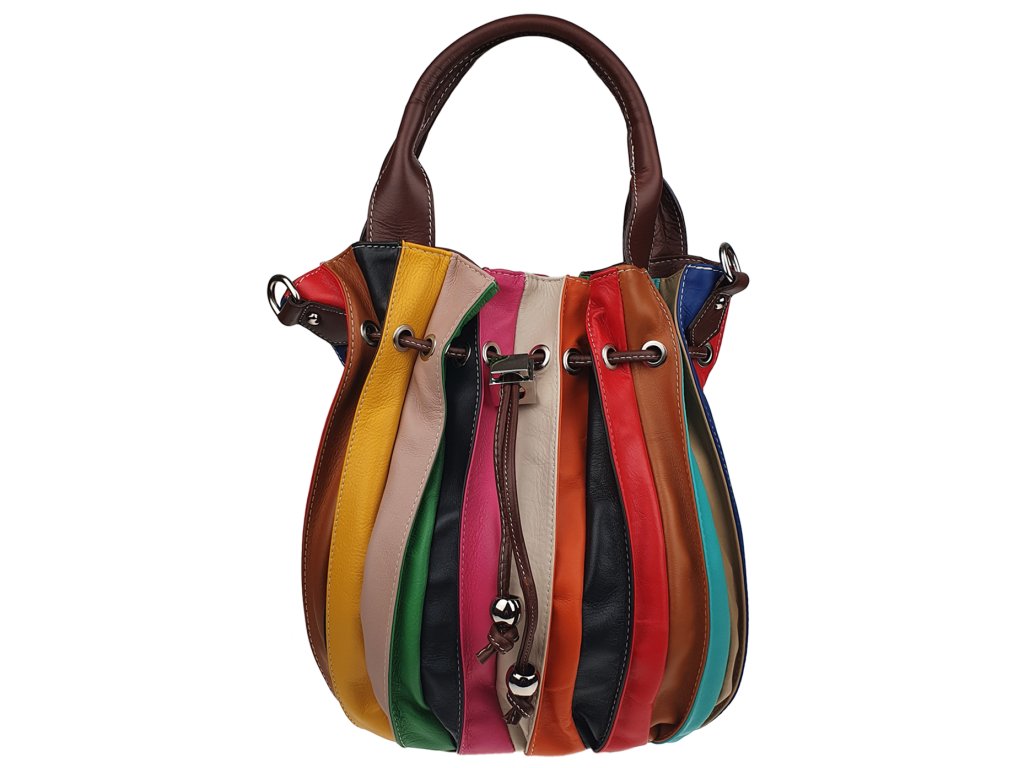 Krásná barevná kabelka s jedinečným designem. Je vyrobena z pravé poctivé kůže a je vhodná k nošení přes rameno. V případě potřeby je možné využít přídavný nastavitelný popruh v délce max. 120 cm, který je součástí balení. Kabelka se uzavírá pomocí magnetické patentky a uvnitř kromě dostatečného prostoru disponuje malým uzavíratelným kapsou a dvěma přihrádkami, např. pro Váš telefon nebo klíče.
