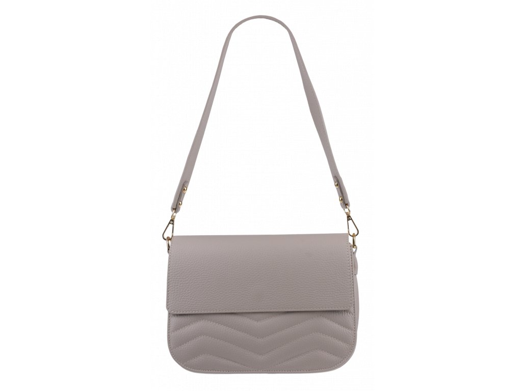 Krásná béžovo-šedá kabelka z měkké kůže. Tato originální kabelka určená k nošení přes rameno je vhodným doplňkem pro pravidelné nošení. Kabelka se uzavírá na klopu a na zip.