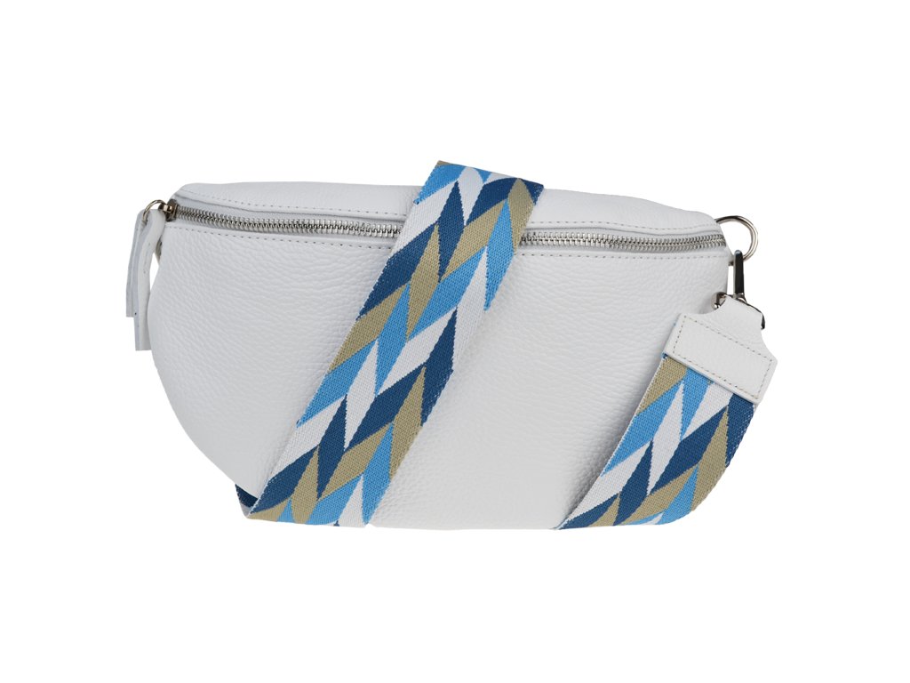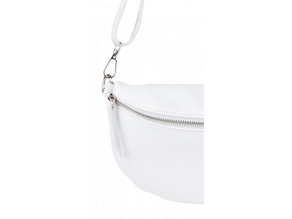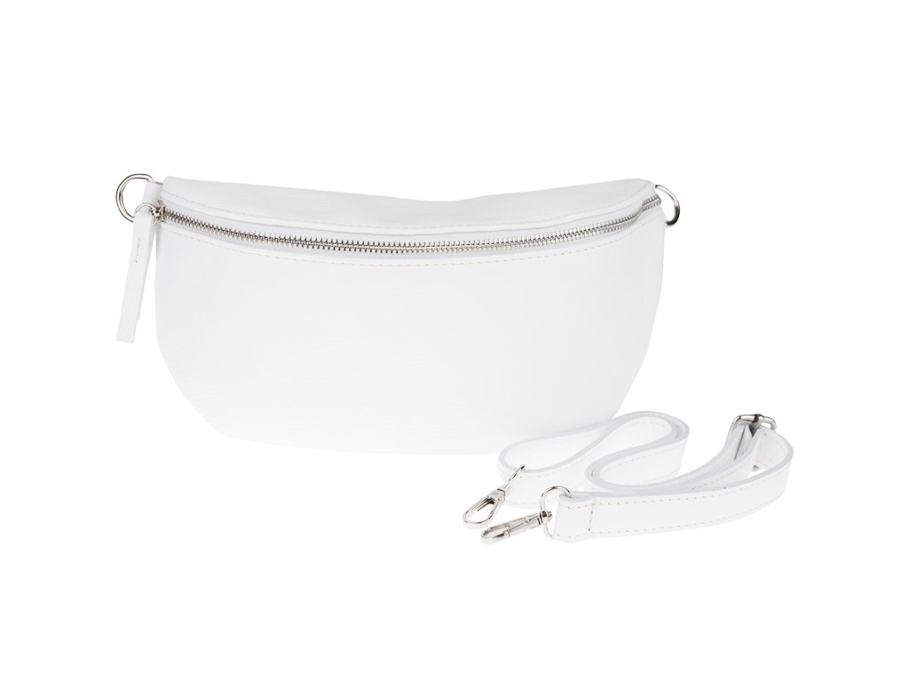 Elegantní, ale zároveň velmi praktická bílá ledvinka malých rozměrů vyrobena z pravé kůže.