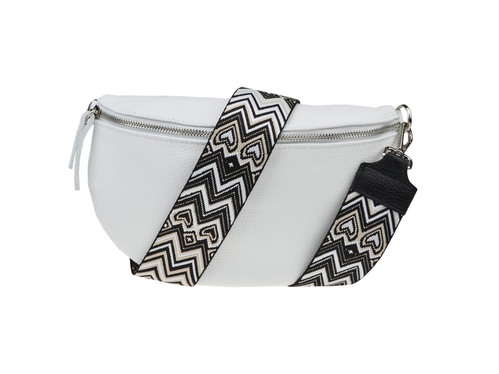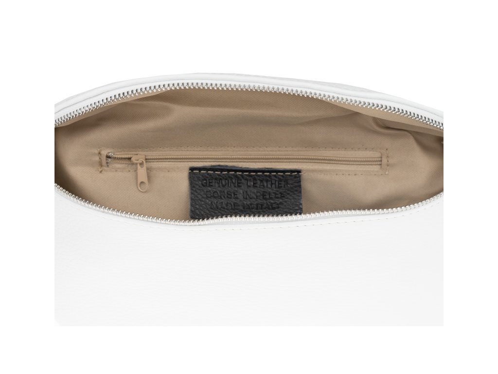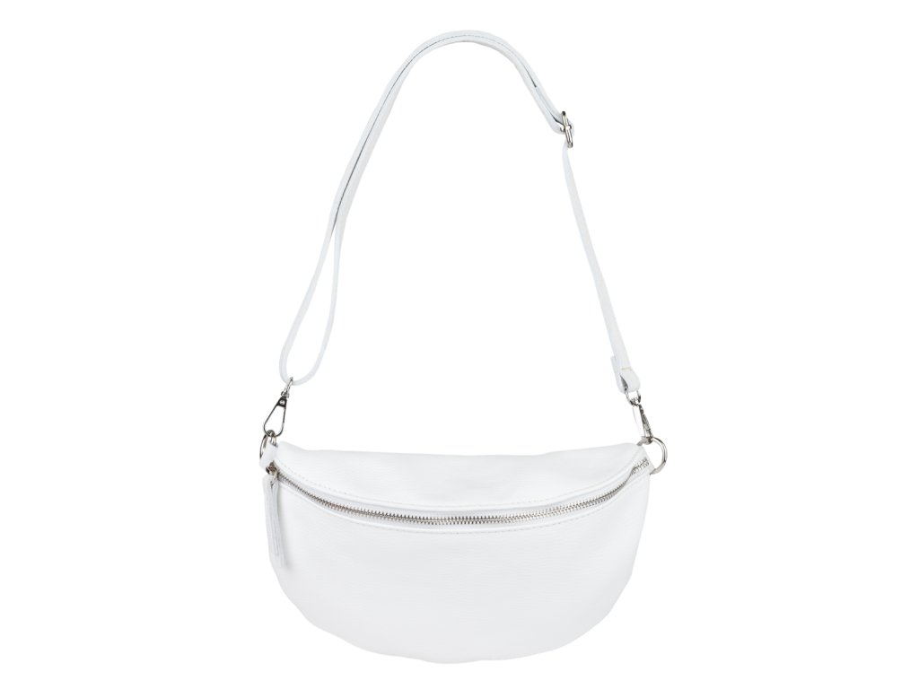 Elegantní, ale zároveň velmi praktická bílá ledvinka malých rozměrů vyrobena z pravé kůže.