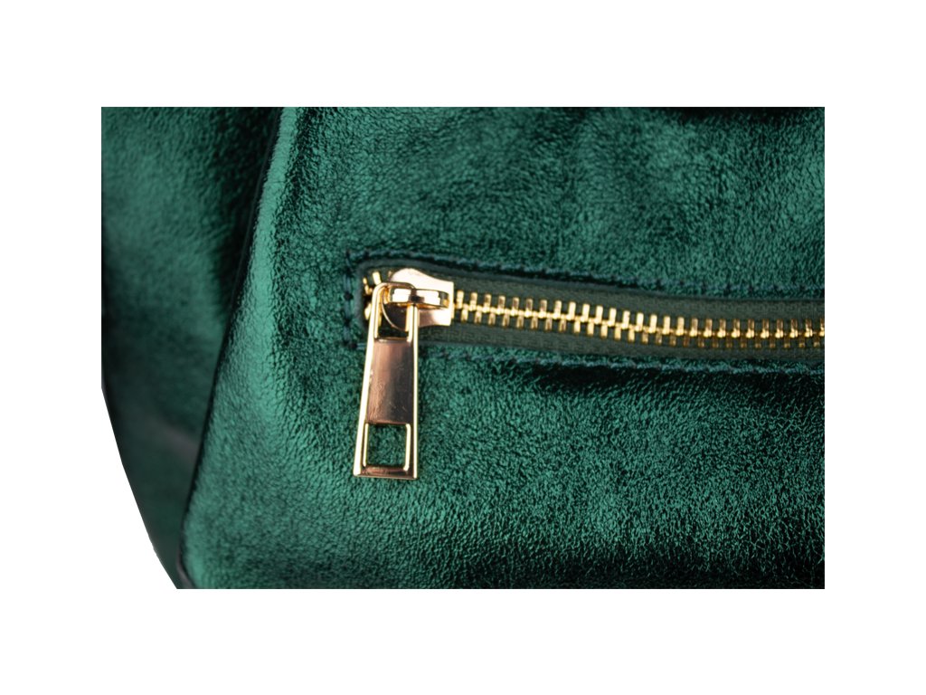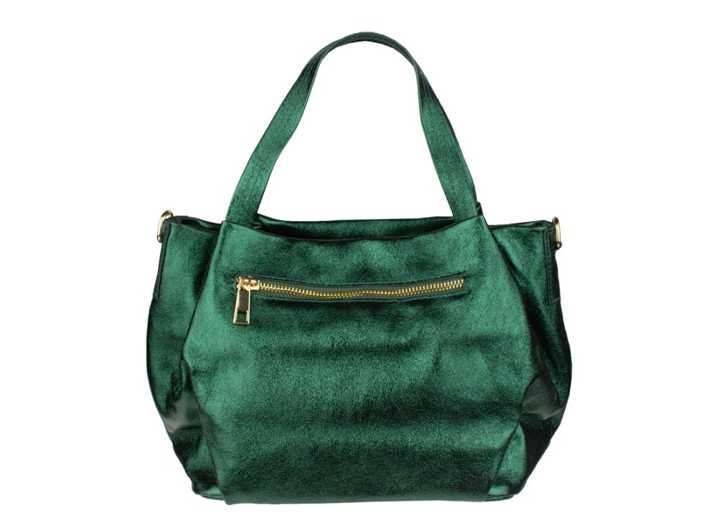 Elegantní a praktická metalicky - zelená kabelka nositelná cross-body (křížem) nebo v ruce. Tato kožená kabelka je uzavíratelná na zip. Uvnitř kabelky najdeme na boční stěně kapsu na zip a přihrádky pro mobil či klíče. Hloubka jejího dna je 13 cm. Kabelka má navíc nastavitelný popruh s maximální délkou cca 120 cm.
