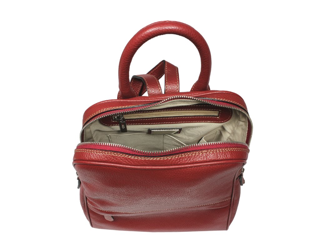 Velmi pěkný kožený batůžek vyrobený z kvalitní kůže. Vhodný jak pro každodenní nošení tak pro volný čas. Kapsy na zip najdete na přední i zadní straně a také po stranách.