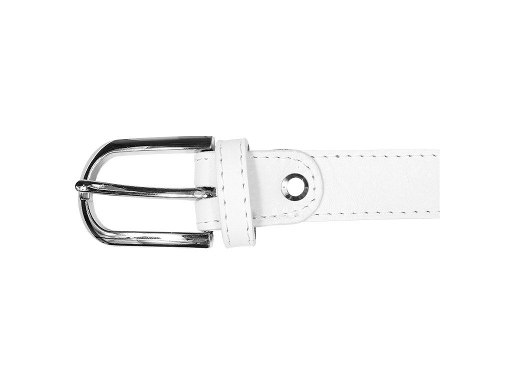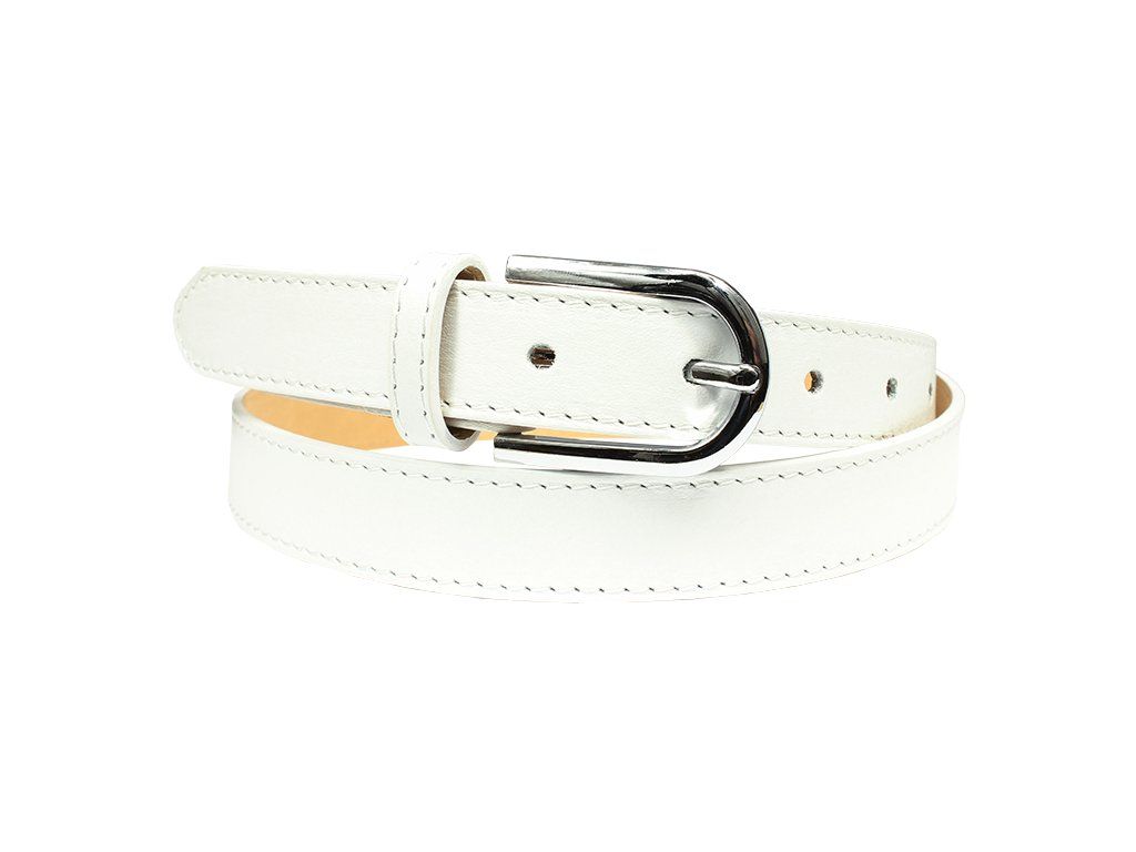 Dámský pásek bílé barvy je vyroben z pravé jemné hovězí kůže. Má decentní sponu stříbrné barvy. Šířka pásku je 2,5 cm. Prvotřídní kvalita od italského výrobce.