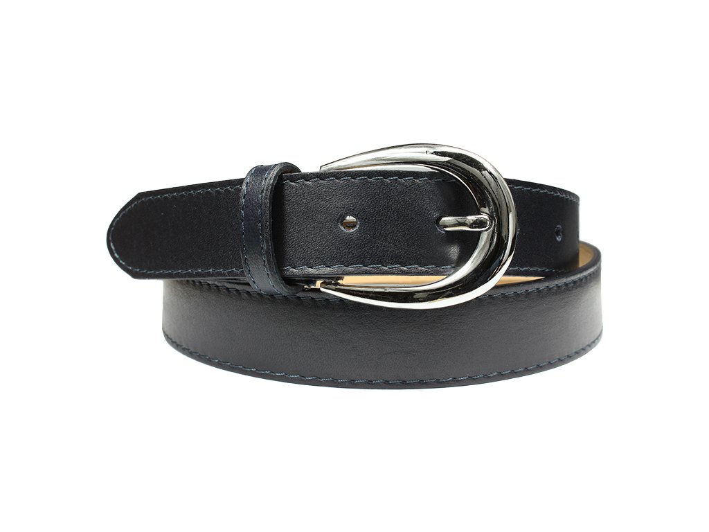 Dámský pásek modré barvy je vyroben z pravé jemné hovězí kůže. Má decentní sponu stříbrné barvy. Šířka pásku je 3 cm. Prvotřídní kvalita od italského výrobce.