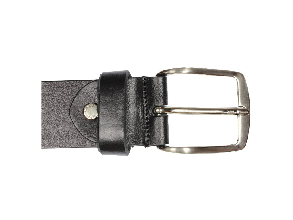 Pásek v černé barvě je vyroben z pravé jemné hovězí kůže. Má decentní sponu stříbrné barvy. Šířka pásku je 3,3 cm. Prvotřídní kvalita od italského výrobce.