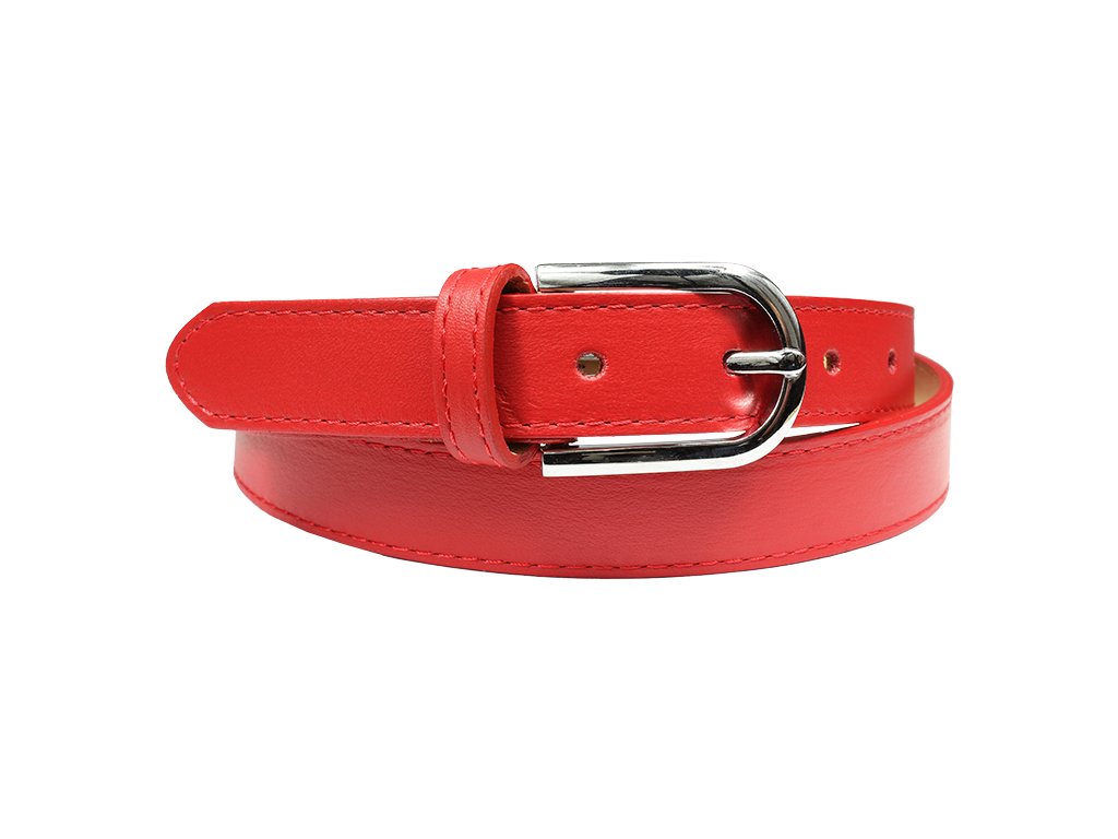 Dámský pásek červené barvy je vyroben z pravé jemné hovězí kůže. Má decentní sponu stříbrné barvy. Šířka pásku je 2,5 cm. Prvotřídní kvalita od italského výrobce.