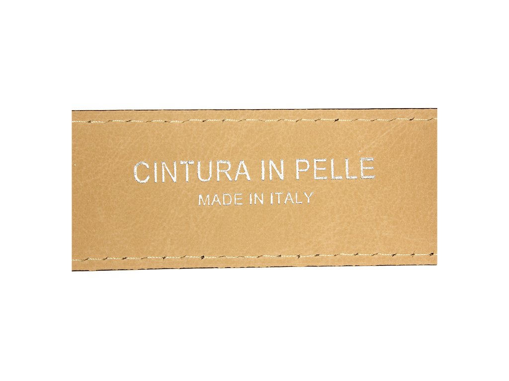 Dámský pásek hnědé barvy je vyroben z pravé jemné hovězí kůže. Má decentní sponu stříbrné barvy. Šířka pásku je 3,5 cm. Prvotřídní kvalita od italského výrobce.