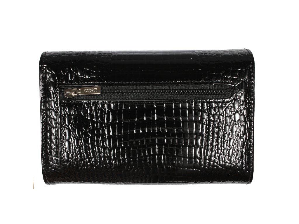 Elegantní a zároveň velice praktická peněženka moderního designu, z pravé lakované kůže černé barvy. Obsahuje dostatek kapsiček a přihrádek na karty i hotovost. Díky svým praktickým rozměrům je velmi dobře skladná a přitom prostorná, takže do ní vše pohodlně umístíte.