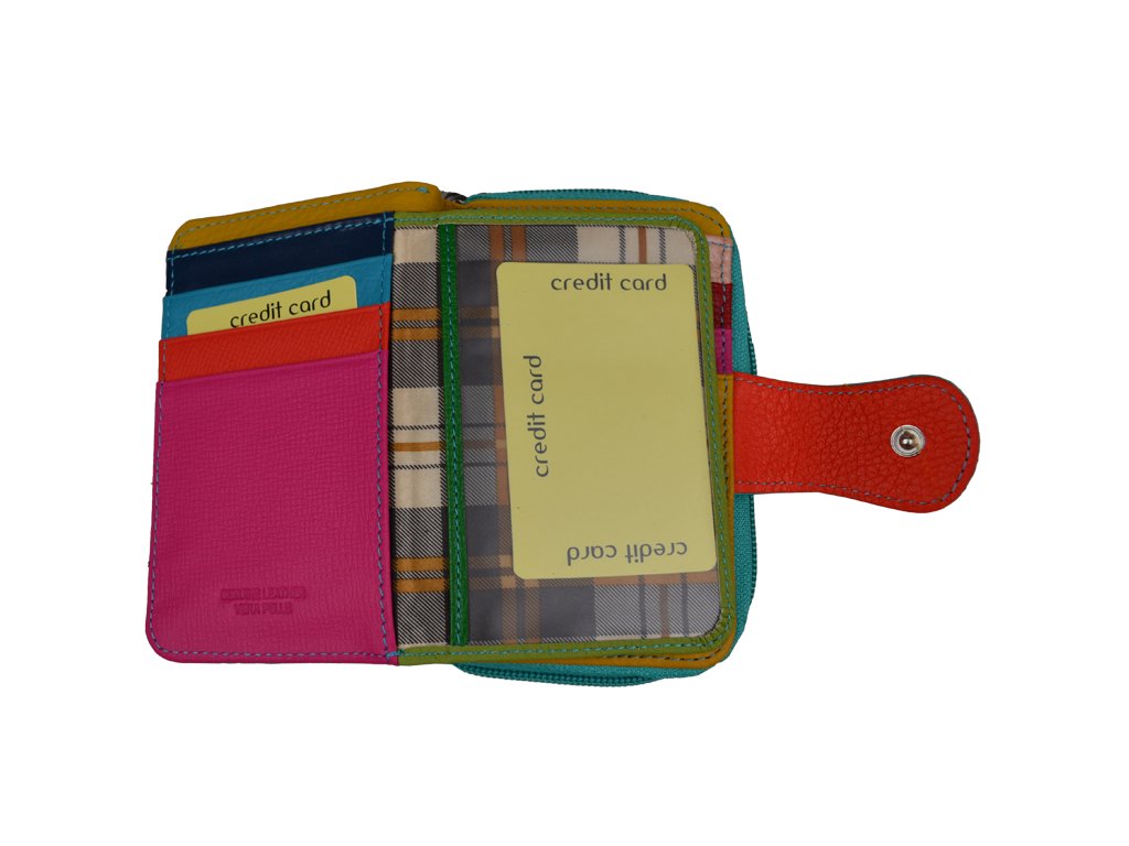 Poutavý vnitřní design: Zatímco vnější strana je elegantně jednobarevná, vnitřek překvapí barevnými přihrádkami (oranžová, žlutá, červená, zelená), které dodávají peněžence osobitost a usnadňují orientaci.