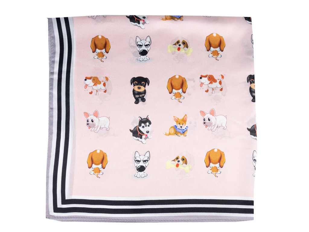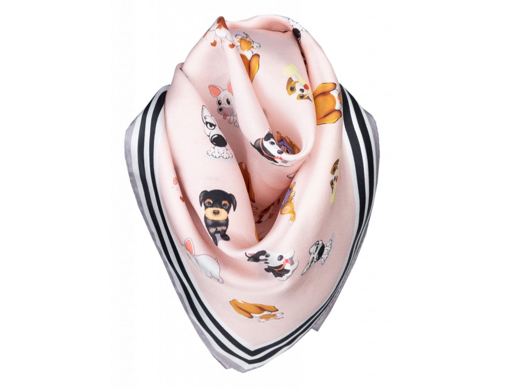Malý elegantní šátek ze 100% hedvábí s jedinečným vzorem.