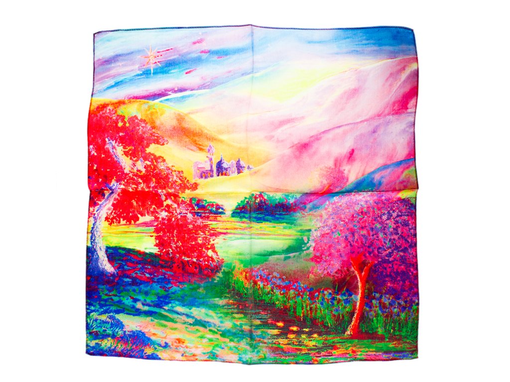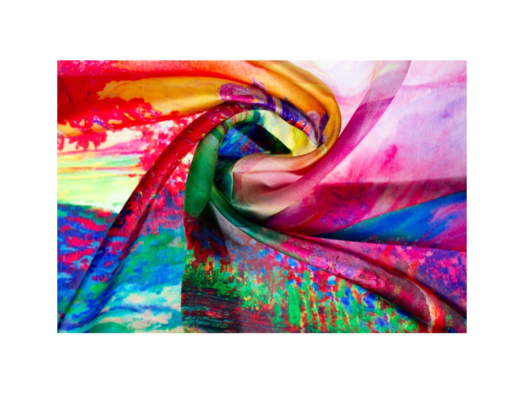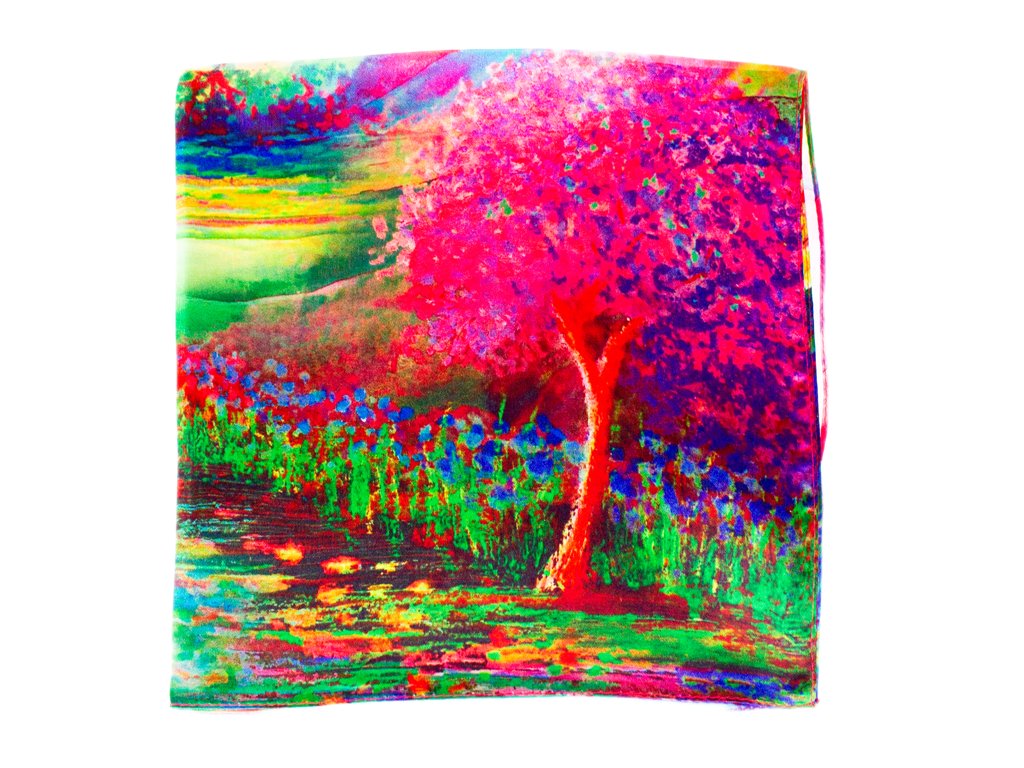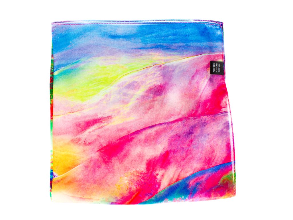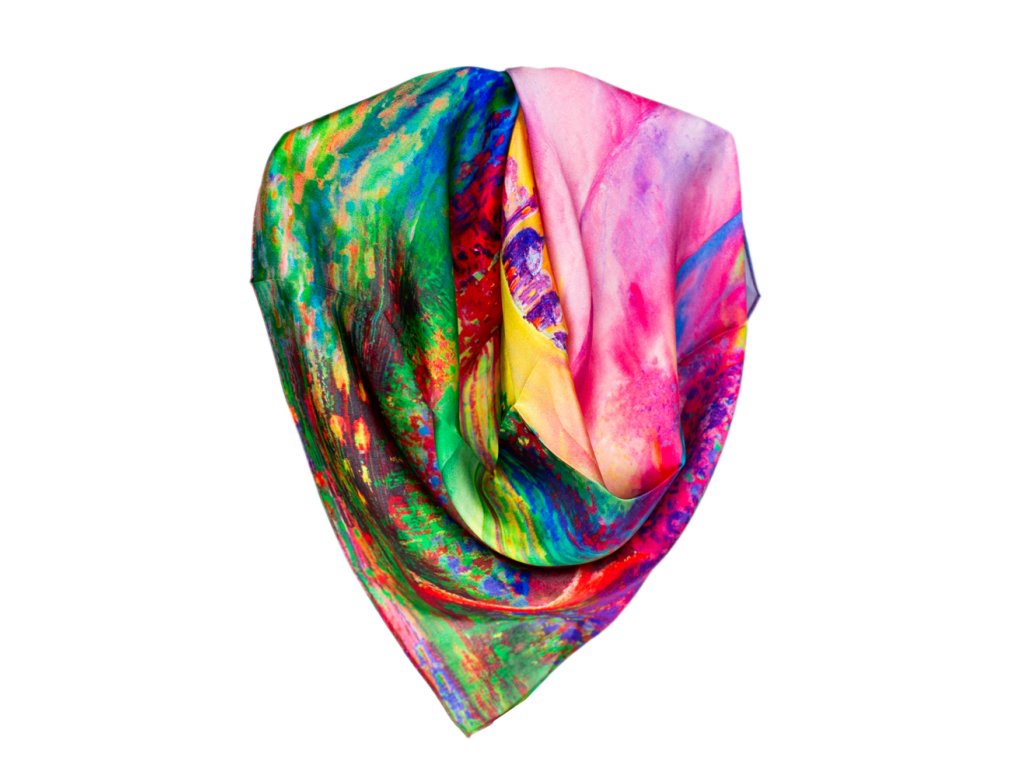 Malý elegantní šátek ze 100% hedvábí s jedinečným vzorem.