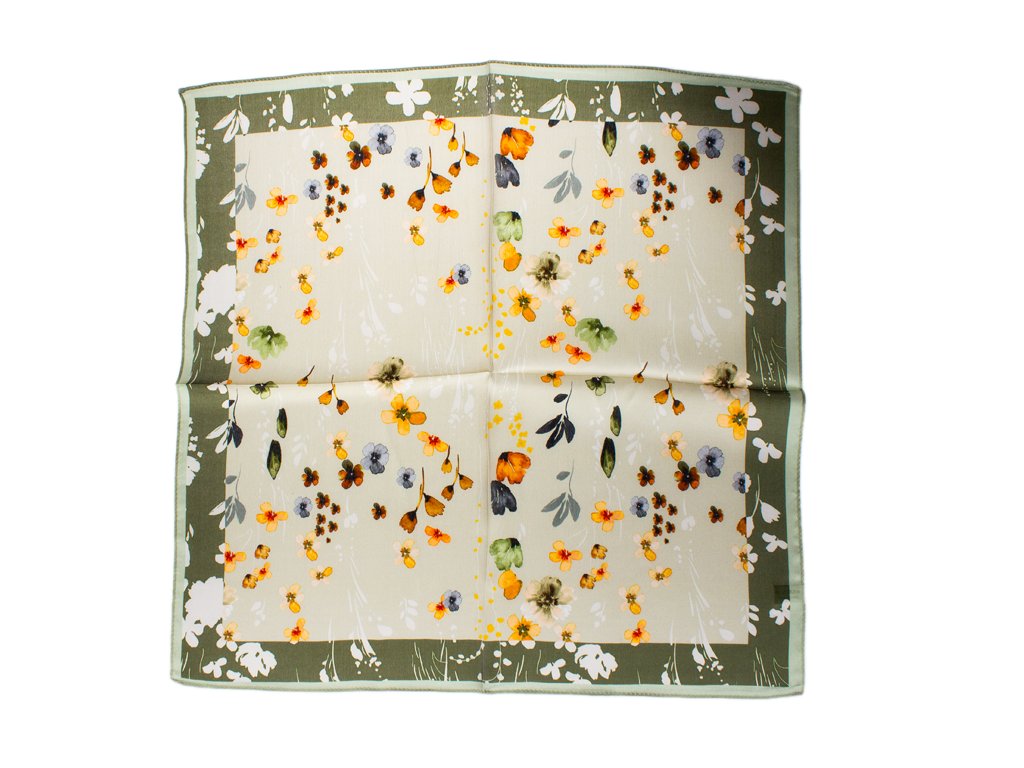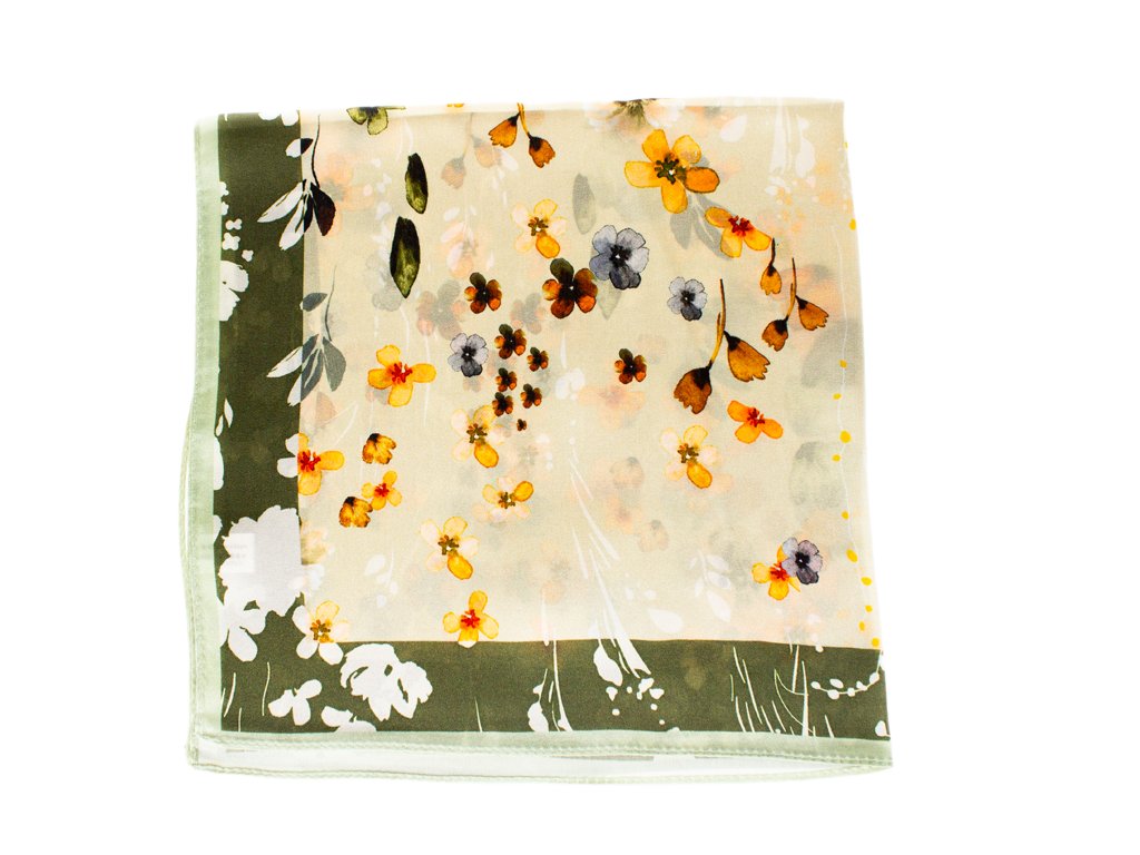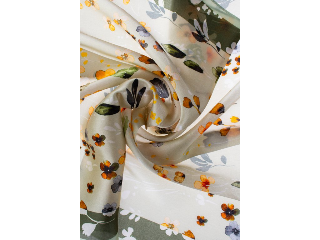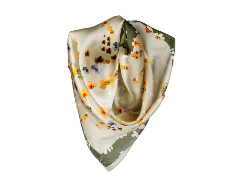 Malý elegantní šátek ze 100% hedvábí s jedinečným vzorem.
