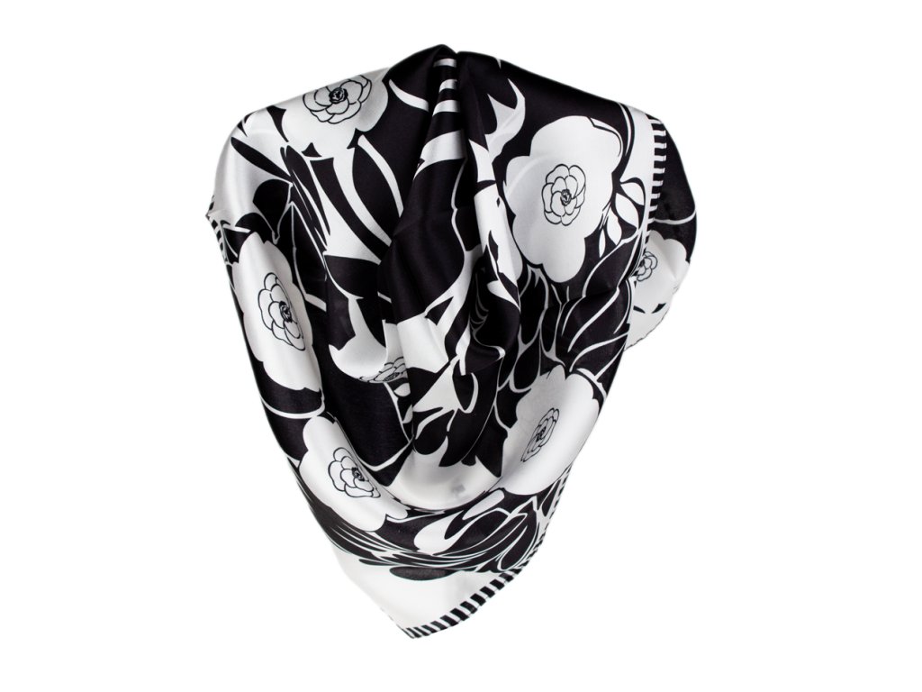 Malý elegantní šátek ze 100% hedvábí s jedinečným vzorem.