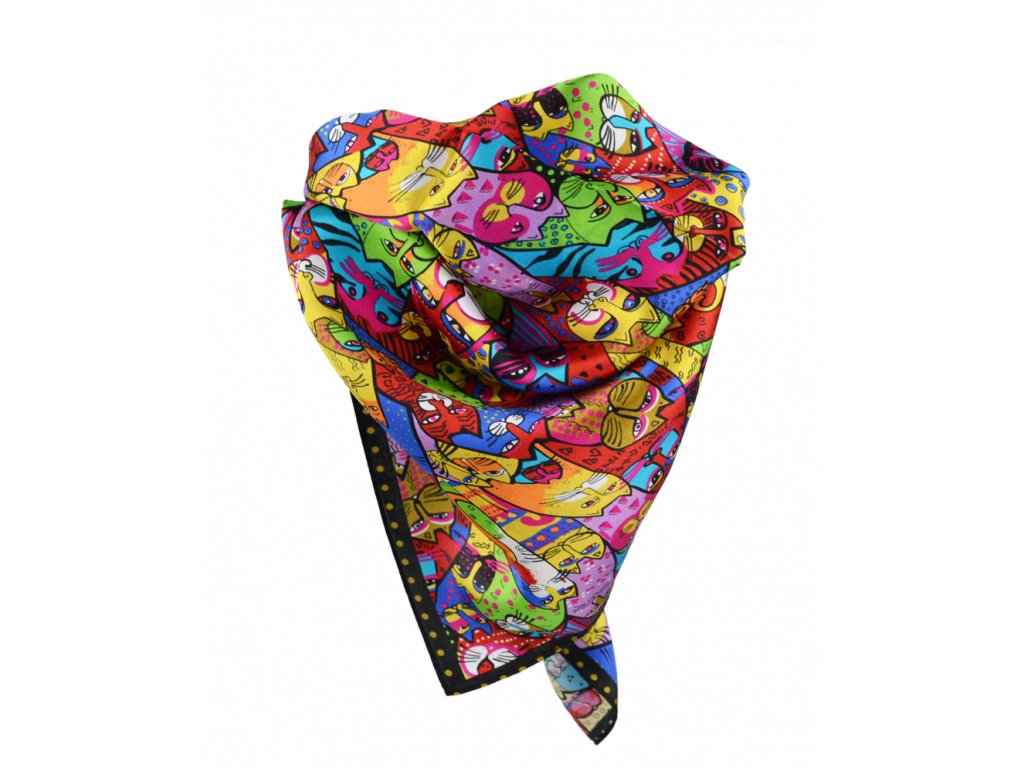 Malý elegantní šátek ze 100% hedvábí s jedinečným vzorem.